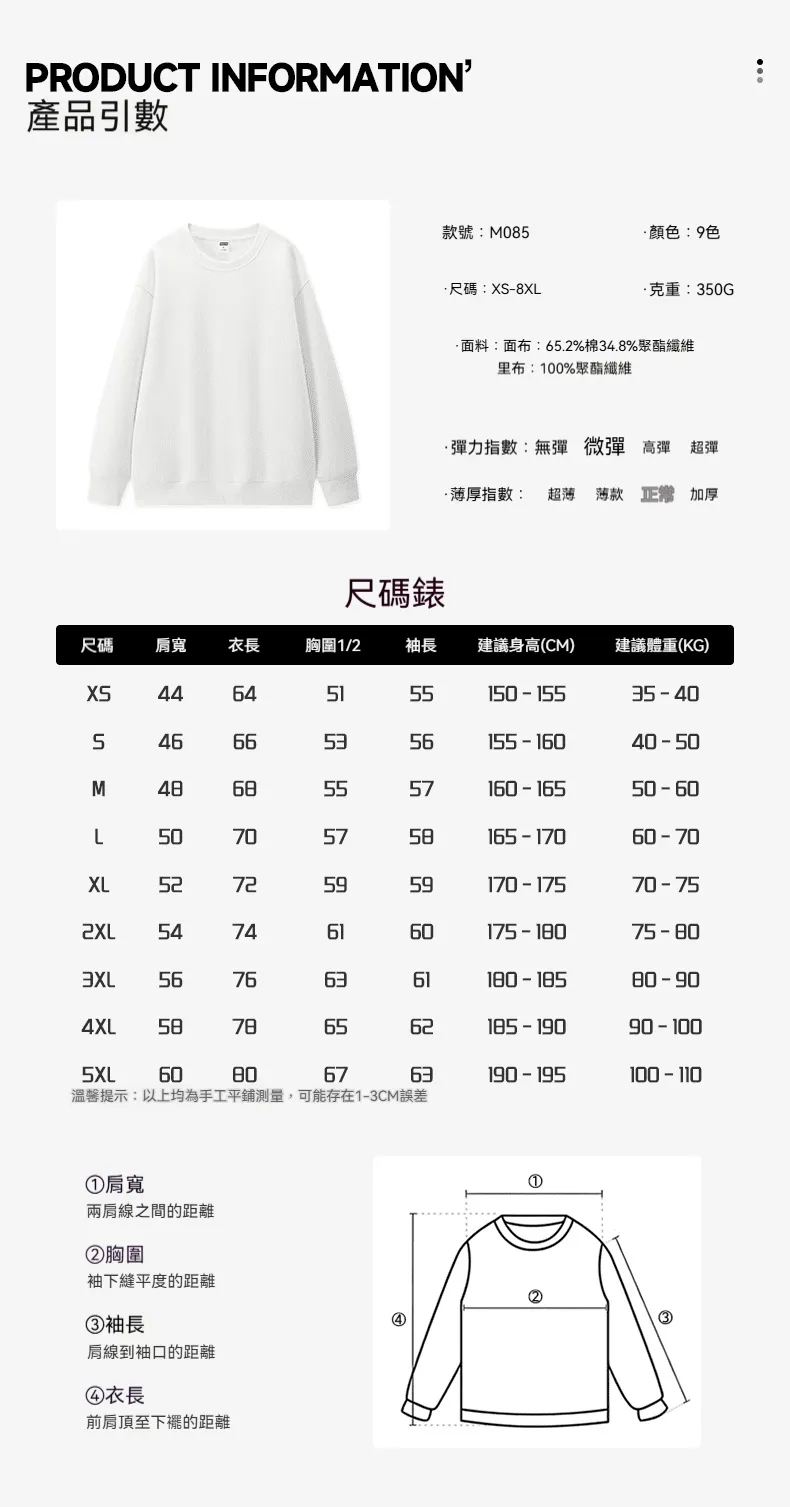 M085潮棉寬鬆圓領衛衣(350克)