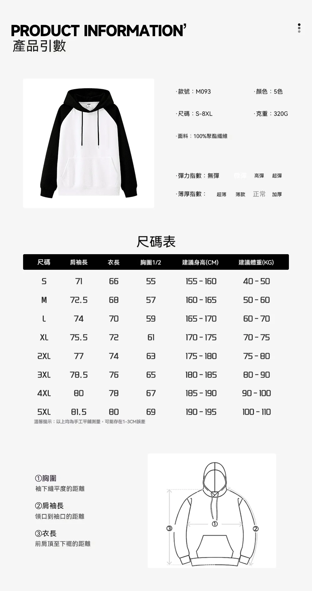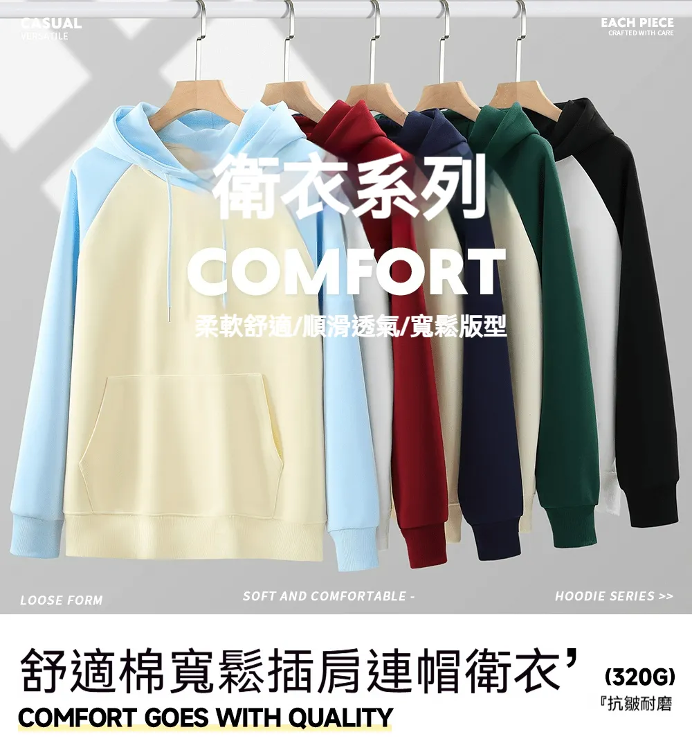 M093舒適棉寬鬆插肩連帽衛衣(320克)
